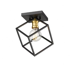 Crisp lines and a modern edge highlight the design of this two-tone one-light flush mount light for your home. It's fashioned with a bronze and olde brass finish with a cube-shaped shade for a look that's eclectic and timeless. It's an eye-catching design that will be a showpiece light in any dining room, foyer, bedroom, or home office. Bedroom/Dining Room/Foyer/Hallway/Kids Room/Kitchen/Living Room/Office/Utility Room Dimmable: Yes