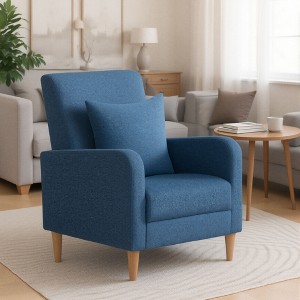 Product Name: Ora Maison Modern Fabric Armchair with Cushion, Upholstered Side Chair for Living Room, Solo Sofa Chair with Wood Support, Blue