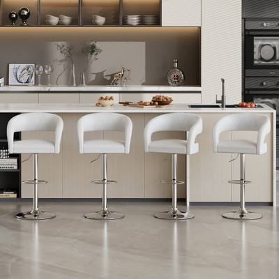 Modern Upholstered Bar Stools Set of 4, Round Seat, Footrest Metal Legsm for Kitchen Island, Dining Room, White