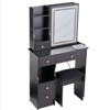 Enhance your small bedroom with this thoughtfully designed vanity table set, perfectly tailored for compact spaces. Measuring 29.2" in length and 50.4" in height, this vanity blends style with practicality, fitting effortlessly into limited areas without compromising on elegance.The vanity is equipped with a versatile mirror lighting system, featuring a convenient touch-sensitive switch right on the mirror surface. Easily switch between three illumination modes—white, natural, and warm light—to suit different makeup needs or moods. The brightness of each mode is fully adjustable with a simple long press, ensuring you always have the perfect lighting for any occasion.For added comfort, the set includes a matching padded dressing stool, offering both softness and support as you get ready for the day or night. Its sleek design complements the vanity, creating a cohesive and stylish look.Assembly is hassle-free, thanks to clearly labeled parts and individually packaged hardware. The step-by-step instructions make the setup process quick and stress-free, even for those new to furniture assembly.