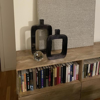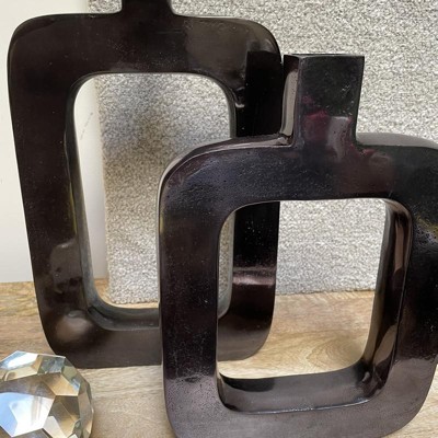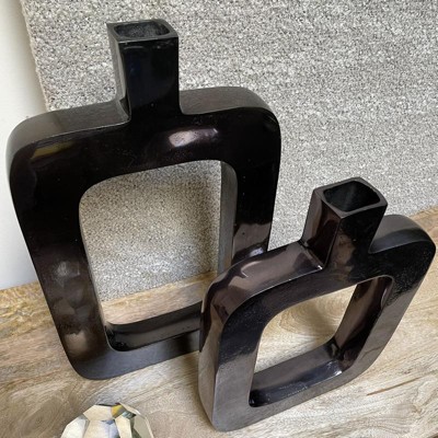 - This decorative black vase features a unique cut-out center which creates its rounded rectangle sculptural shape