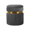Modern Velvet Round Ottoman with Storage, Grey Introducing the ultimate solution to your storage and seating needs - the Tufted, Modern Round Velvet Storage Ottoman! This beautifully crafted piece of furniture is stylish and comfortable and provides ample storage space to keep your home organized and clutter-free. With its plush velvet exterior, and sturdy, round base, this tufted ottoman is the perfect addition to any living room, bedroom, or entryway. Whether you use it as a footstool, extra seating, or even as a coffee table, you'll love its comfort and convenience. Weight limit: 265 lbs. Color: Grey and Gold.