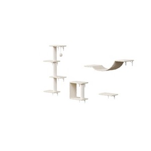 [Deluxe Cat Wall Shelves] This 4pcs cat wall climber set includes a plush cat bridge & steps, a scratcher, and a cat tree with sisal rope. Come on and build cat walkways on walls [Sturdy and Durable] Cat Furniture each component is made of durable particle board and wrapped in soft and skin-friendly plush fabric, providing a comfortable resting environment for your cat. Every shelf is reinforced with sturdy triangular supports, capable of supporting weights up to 22 pounds, ensuring your cat's safety and stability, allowing them to play and rest freely with peace of mind [SPACE SAVING, VERTICAL VISION] The hanging multi-functional cat climbing frame saves floor space and increases your cat's mobility. The multi-level design allows cats to release their natural instincts, providing a safe place to rest and burn off energy [DIY ADJUSTMENT, EASY TO INSTALL] Comes with screws for mounting and detailed instructions for easy installation with an electric drill. The combination can be rearranged according to space requirements and adjusted to the height suitable for cat jumping. Beautiful and practical, suitable for various furniture environments