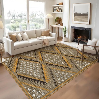 Modern Washable 5x7 Area Rug - Low Pile Abstract Non-Slip Accent Carpet for Living Room, Bedroom, Kitchen, Office-Yellow