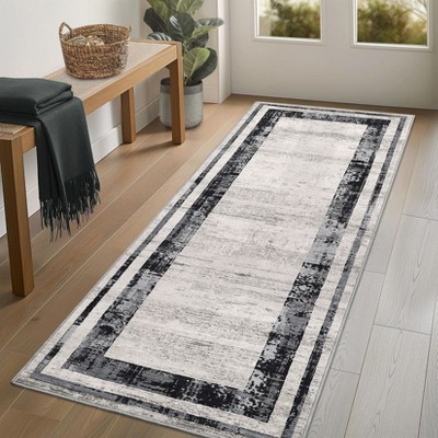Modern Washable Abstract Area Rug, Soft Non-Slip Accent Carpet, Stain-Resistant Low Pile Foldable Mat for Bedroom, Kitchen, Hallway, Blue 5*7ft