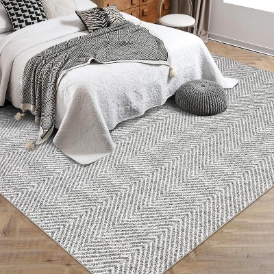 2x6FT Modern Washable Area Rug for Living Room, Leaf Indoor Carpet with Non Slip Backing, Low Pile Stain Resistant Floor Mat for Dorm, Beige