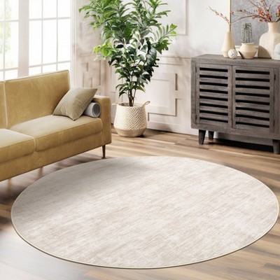 Modern Washable Area Rug, Non Slip Stain Rsistant Braided Print Carpet, Throw Mat for Bedroom Living Room Dining Room Home Decor, Beige 4*4ft Round