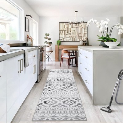 - --Modern Design:: This soft washable runner rug features a clean and bright geometric pattern crafted from simple lines, making it a standout piece that effortlessly blends with various home styles while enhancing your space