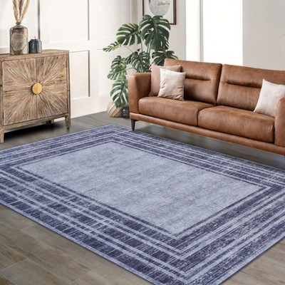 Modern Washable Geometric Area Rug, Ultra-Thin Low-Pile Non-Slip Accent Carpet, Soft and Stain Resistant for Living Room, Bedroom, Dining,Blue