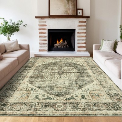 Modern Washable Geometric Rug – Ultra-Soft Distressed Accent Carpet with Non-Slip Backing