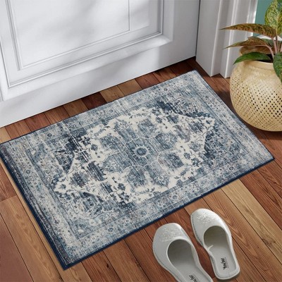 Washable Leaf Area Rug, Non Slip Non Shedding Floor Cover, Foldable Low Pile Plant Accent Mat for Bathroom Bedroom Living Room, Blue 4*6ft