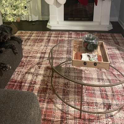 Modern Washable Rug Farmhouse Plaid Rug Tartan Throw Rugs Carpet, 9'x12' Red