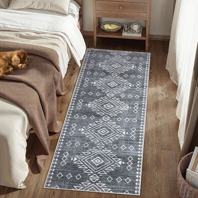 Designed for high-traffic areas, this modern washable runner rug combines sleek style with practical performance. The ultra-thin, low-pile construction ensures doors glide smoothly over it, while the non-slip backing keeps it securely in place on hard floors. Featuring a contemporary abstract design, this indoor rug enhances the look of hallways, kitchens, bathrooms, laundry rooms, and bedrooms. Stain-resistant and easy to clean, it's perfect for busy homes with pets and kids.