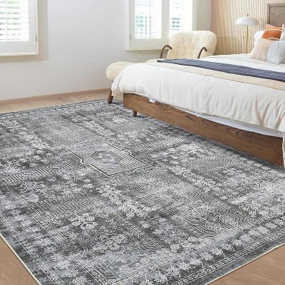 Modern Washable Scalloped Rug with Non Slip Backing, Neutral Farmhouse Soft Low Pile Carpet, Ultra Thin Non Shedding Floor Covering for Living Room