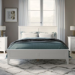- Stylish and simple platform white full bed for your choice; bed frame is made of pine wood, extra small legs in the middle for strong construction and high load capacity.