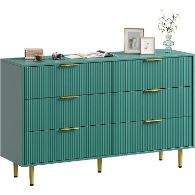 Product DescriptionThis elegant dresser features a unique groove design with gold accents, offering 5 spacious drawers for versatile storage of clothes, bedding, and more. Made from durable, eco-friendly MDF with scratch-resistant finish and supported by sturdy metal legs with anti-tip safety, it' perfect for bedrooms, offices, or living rooms. Easy to assemble with clear instructions, this stylish dresser combines functionality and charm to enhance any space.Product Information