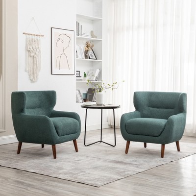 ModernLuxe Accent Chair, Cozy Wingback Armless Chair, Wooden Single Sofa Lounge Chair, Green