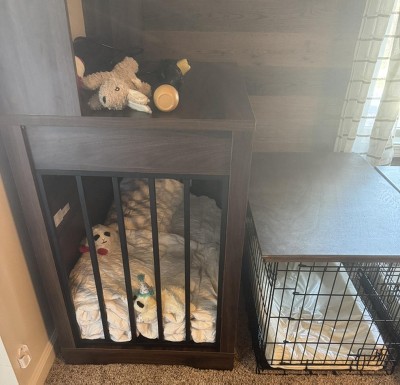 I gave this a 2 star because it is well built and easy to assemble but I have two medium sized dogs and one of the wedged his head and neck in the bats on the side and almost died ..His eyes were bulged out and barely breathing when I found him …the bars are VERY wide spread on sides of the cage so do not buy this for anything smaller than a lab ..I now have a huge dog cage assembled sitting in my front room I cant use ..