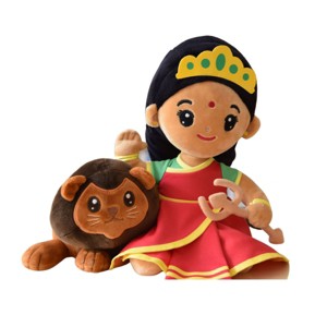 For a modern spin on ancient Hindu culture, bring home this singing plush toy, which is as engaging as it is educational. Winner of the Best Toy Award by Good Housekeeping and Parents. Our Durga Devi features a trishul (trident) in her left hand, and is seen affixed to a lion.