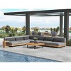 Modular Fabric Outdoor Lounge Suite Sectional Sofa Ensemble w/ TeakTone Wood Accents & Matte Metal Frame Side Table