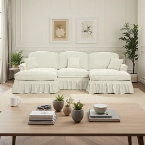 - Two Styles in One ¨C Detachable ruffle skirts for the sofa and ottoman allow you to switch between an elegant look and a mid-century/transitional style effortlessly.