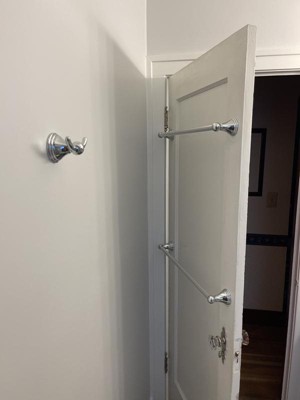 One tiny, flimsy, and poorly designed screw that is supposed to attach the finished product to the wall mounting hardware makes this product fail. MOEN just needs to provide a longer and better screw, just one, and this product would work great. But now I have 2 holes in my bathroom wall, and the finished rack will not firmly attach to the mounting hardware.