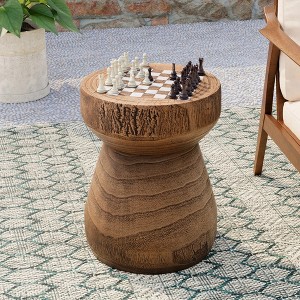 Inspired by the charming silhouette of a shiitake mushroom, this lightweight side table boasts a hand-distressed finish with realistic wood-grain texture, blending rustic allure with modern durability. The tabletop features a striking international chessboard pattern, adding a touch of vintage-inspired whimsy to gardens, patios, or balconies. Made from robust yet portable concrete, it withstands the elements while effortlessly complementing both casual and curated outdoor settings. A conversation-starting piece that marries art and utility. Lightweight & Durable. Crafted from weather-resistant concrete for easy portability and long-lasting outdoor use.