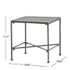 - Mix and match with this iron end table. You can pair this end table with almost any set of chairs, loveseats, or coffee tables for your outdoor patio.
