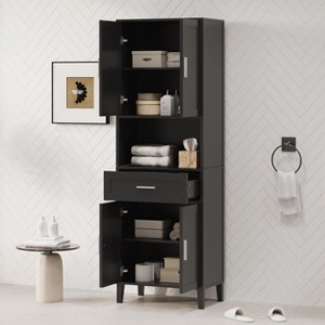 MOEPISY Freestanding Tall Bathroom Cabinet with a Drawer, 2 Cabinets, 4 Soft-Close Doors, 2 Adjustable Shelves