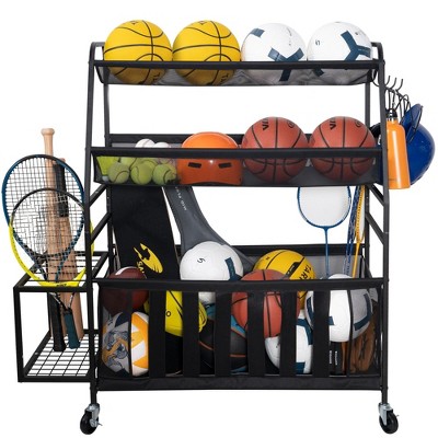 【Multi-Scenario Use】:Black ball rack,The size is 11.81"D x 23.62"W x 33.26"H。can accommodate up to 8-10 piece ball,When the ball is full,You still get the ball in your hands with ease,fit Indoor, garage, Home and Outdoors sports equipment organizer。