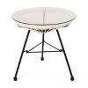 - MODERN: With clean lines contrasted perfectly by its circular top, our rattan table is the ideal modern accessory for your outdoor space. Finished with thin angled legs, this table not only has a sleek, minimalistic look but also provides a stable structure.