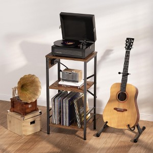 - 【Two Combinations】With flexible design,the End table can be customized in two different configurations for your specific room needs!it can not only serve as a record player stand,but it also doubles as a great end table or side table for small spaces.also on a side note if you don't want to install the two book divider bars on the bottom shelf you don't have to,it's optional so if you want a bigger storage space