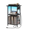 MOEPISY Record Player Stand with Charging Station, Turntable Stand with Storage, Black