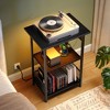 - Sturdy and Stable: Crafted from high-quality particleboard and steel, this record player shelf with a charging station is structurally sound and heavy-duty. Adjustable feet ensure stability on uneven surfaces without scratching the floor