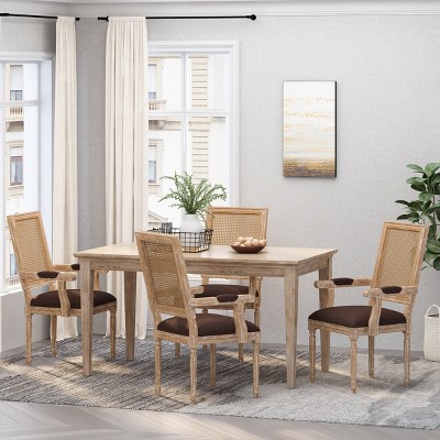 MOEPISY Set of 2 Outdoor Wood And Wicker Dining Chair Brown - 1 of 4