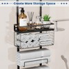 - [LARGE CAPACITY TOWEL ORGANIZER] This upgraded version of the towel rack increases the spacing, each layer can be placed two towels, while the top of the additional installation of the basket, the top space can also be used to fully realize the maximization of the increase of storage space function
