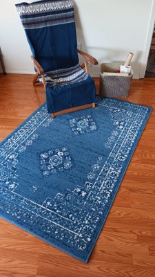 The blue of this rug is boring, I feel like this pattern is over used and the colors all kind of blend together not it a good way. It also had a smell out of the package which did take a while to air out. It’s okay and you would need a rug gripper under.
