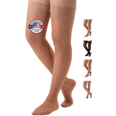 Mojo Compression Socks thigh-high sleeves deliver medical-grade support designed to help improve circulation, reduce swelling, and support tired or achy legs throughout the day. These sleeves provide firm graduated compression from ankle to thigh, offering targeted relief ideal for varicose veins, edema and long periods of standing, sitting, or travel.