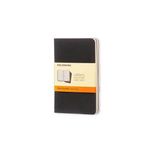The Moleskine Cahiers are journals with a flexible heavy-duty cardboard cover with visible stitching on the spine. The last 16 sheets are detachable and there is a pocket for loose notes. Each set of 3 pieces includes the Moleskine history. With ruled pages in 70 gsm acid-free paper. Set of 3.