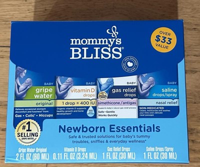 Our baby line has been carefully designed to provide mom with safe and gentle products to help soothe, support and aide baby. We collected four of our most loved baby wellness products into our Newborn Essentials Gift Set: Gripe Water Original and Gas Relief Drops to help calm tummy troubles*, Vitamin D Drops to promote healthy growth* and Saline Drops/Spray to help with sniffles. Feel good about the products you give with Mommy's Bliss, the #1 brand in colic relief.