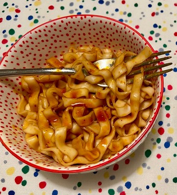 - Gently spicy and perfectly chewy noodles.