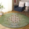 Introducing our exquisite area rug, a perfect blend of traditional charm and modern craftsmanship. This 6'-7" X 6'-7" round rug, with a comfortable 3/8" pile height, is an artful addition to any room. The sage and rust color palette exudes a sense of warmth and elegance, seamlessly integrating with your home decor to create a cohesive look.