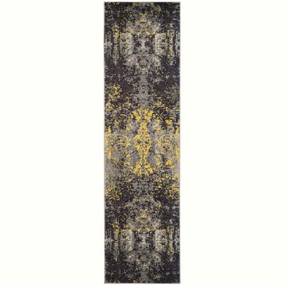 Elevate your hallway or elongated space with our luxurious runner area rug, gracefully sized at 2-feet 2-inches by 10-feet to seamlessly fit into narrow spaces. This sophisticated runner boasts a modern grey/multi color palette and features a tasteful pattern that showcases intricate details and a distinct medallion centerpiece surrounded by ornate scrollwork.