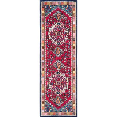 Introducing our vibrant and exquisitely designed Magenta/Multi Runner Rug, a stunning addition to any space that seeks to combine classic charm with a touch of modern vibrancy. At 2 feet 2 inches by 6 feet, and featuring a pile height of 3/8 inches, this power-loomed masterpiece blends functionality with style, providing a luxurious underfoot and a visual delight.