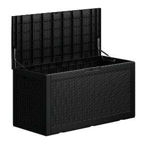 Mondawe 100 Gallon Wicker Resin Deck Box Resin Outdoor Storage Box, Black