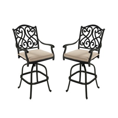 Mondawe 2 Pieces Powder Coated Cast Aluminum Outdoor Dining Armchair with Cushion Dark Grey