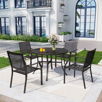 Mondawe 5-Piece Plastic Chair and Steel Table Outdoor Dining Set, Plastic Chairs and Table Set for Garden Patio, Black
