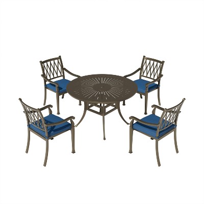 Mondawe 5 Pieces Outdoor Patio Dining Set with 48 in W Round Dining Table and 4 Swivel Rocking Chairs