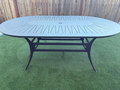 [This review was collected as part of a promotion.] This outdoor dining table is amazing to have. It’s made out of cast aluminum which makes it very durable especially for outdoors. I love the design on top of the table. It has a slot in the middle that you can fit your outdoor umbrella inside, perfect for hot weather. It’s easy to clean and it’s wide enough for at-least 6 people to sit at.