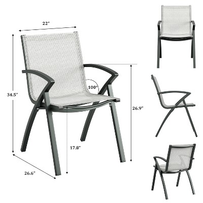 Seating Piece 1: Patio Dining Arm Chair: 39.96 inches (H) x 22.24 inches (W) x 27.17 inches (D), 39.96 inches (seat back height), 27.17 inches (seat depth)